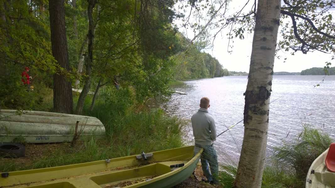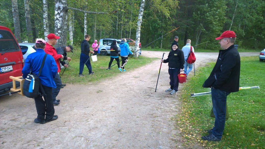 kohtuullinen määrä innokkaita onkijoita kokeilemaan kalaonneaan.